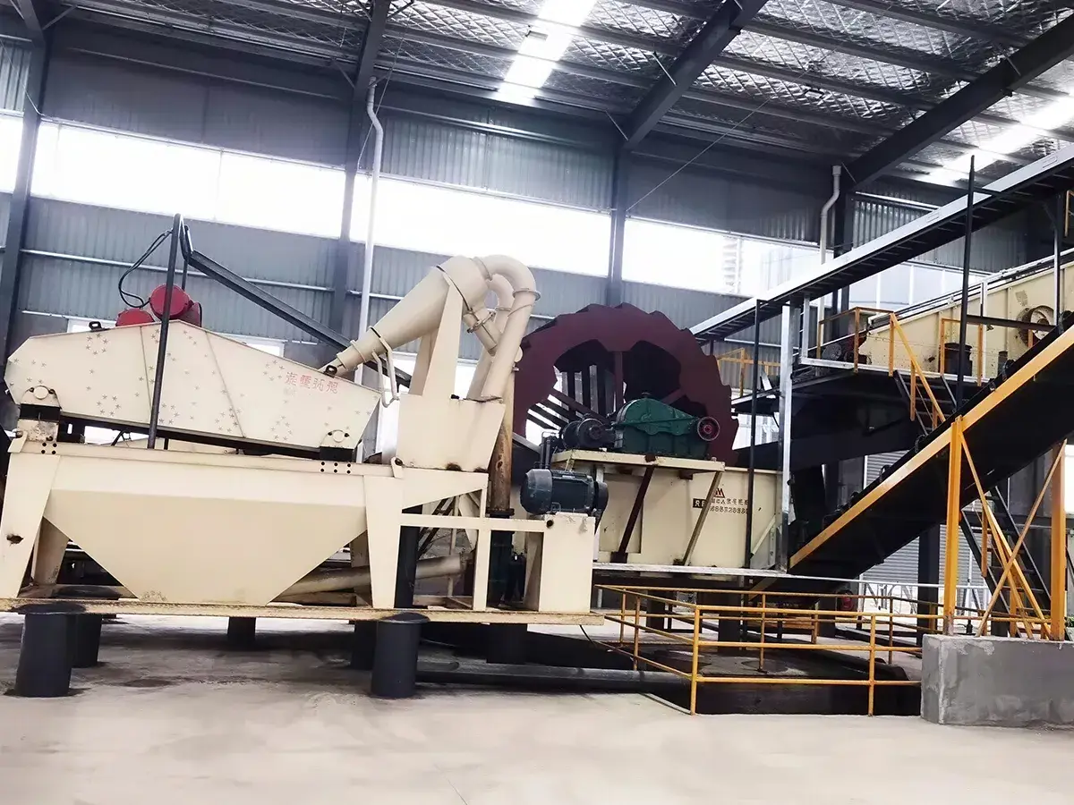 Производственная линия рассчитана на мощность свыше 400 тонн в час и охватывает полный технологический цикл, включая стадии дробления, производства песка и его промывки.